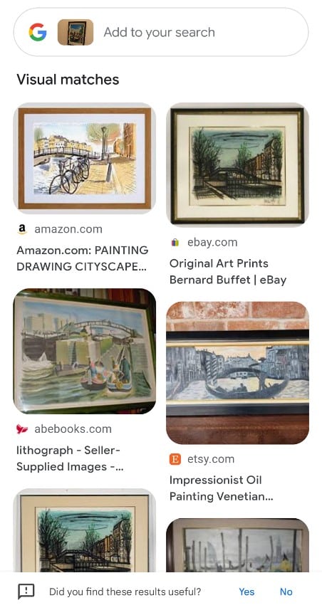 דוגמה נוספת – צילום של תמונת קיר מציע לנו ציורים דומים נוספים, עם אותם אלמנטים פחות או יותר: ספינה / סירה על מים, עם גשר כלשהו וסביבה אורבנית פחות או יותר.