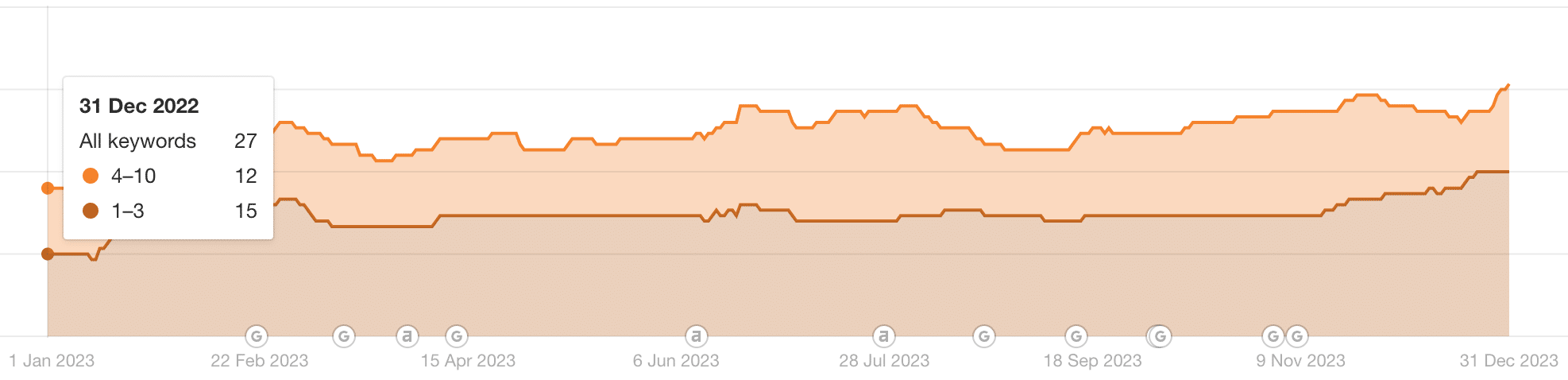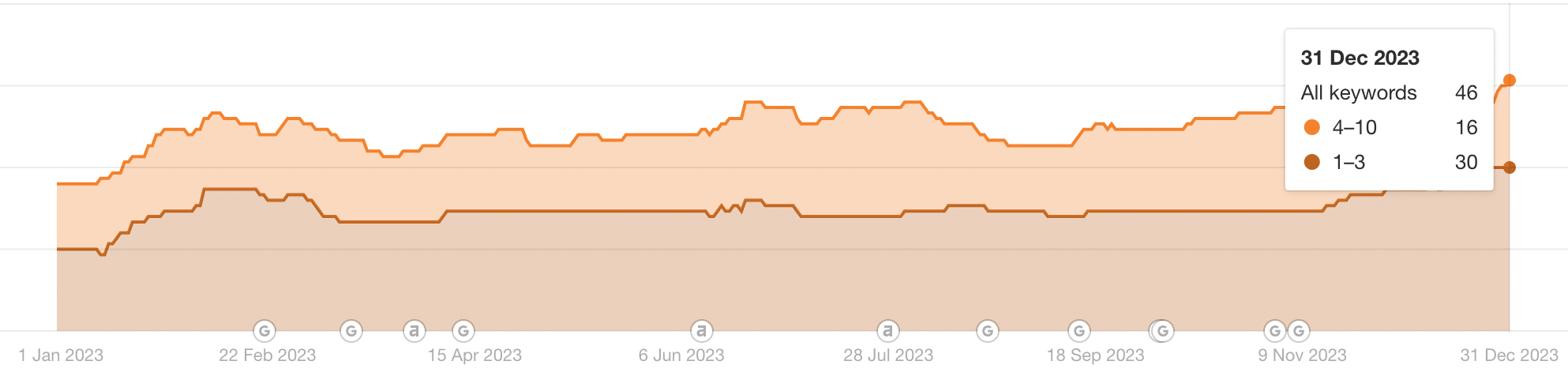 בנוסף, אפשר לראות שכמות הביטויים שהאתר מדורג עליהם בשלושת התוצאות הראשונות, הכפיל את עצמו מ-15 ל-30, מה שעזר למקסם את התנועה האורגנית לאתר.