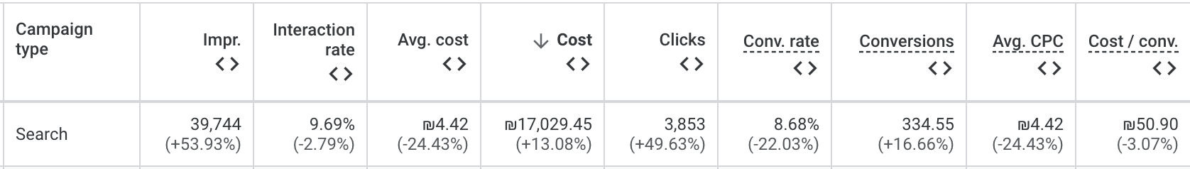 קידום ממומן: מתחילת הקמפיין החדש ועד תום השנה, בהשוואה לתקופה הקודמת, ביצועי הקמפיין השתפרו באופן משמעותי. כמות החשיפות עלתה בכ-54%, המחיר הממוצע לקליק ירד בכ-24.5%, כמות הקליקים הכוללת עלתה בכמעט 50%, כמות ההמרות עלתה ב-16.6% ועלות ההמרה ירדה ב-3%.