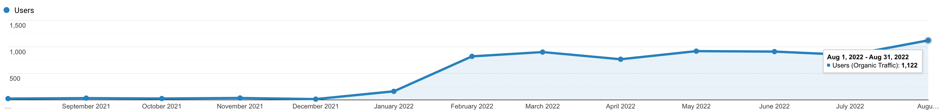 מהר מאוד ניתן היה להבחין במגמת השיפור, כאשר לאחר קצת יותר משלושה חודשים, הטראפיק האורגני של האתר החל לטפס מדי חודש, עד שלאחר 11 חודשים של עבודה משותפת, כמות המבקרים האורגניים באתר עמדה על לא פחות מ-2252 בחודש.