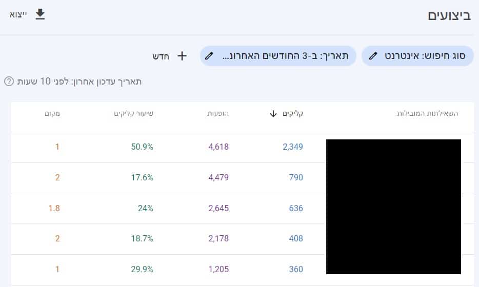 מה שחשוב לזכור בכל הנוגע לגוגל קונסול, שהמיקומים המוצגים הם ממוצעים בלבד (מקום 2.3 בגוגל לדוגמה) ושהם תלויים בטווח הזמן שאנו בודקים. ככל שטווח הזמן ארוך יותר (עד 16 חודשים אחורה בזמן), כך המיקום הממוצע יהיה פחות מדויק בהשוואה למיקום כפי שהוא כרגע.