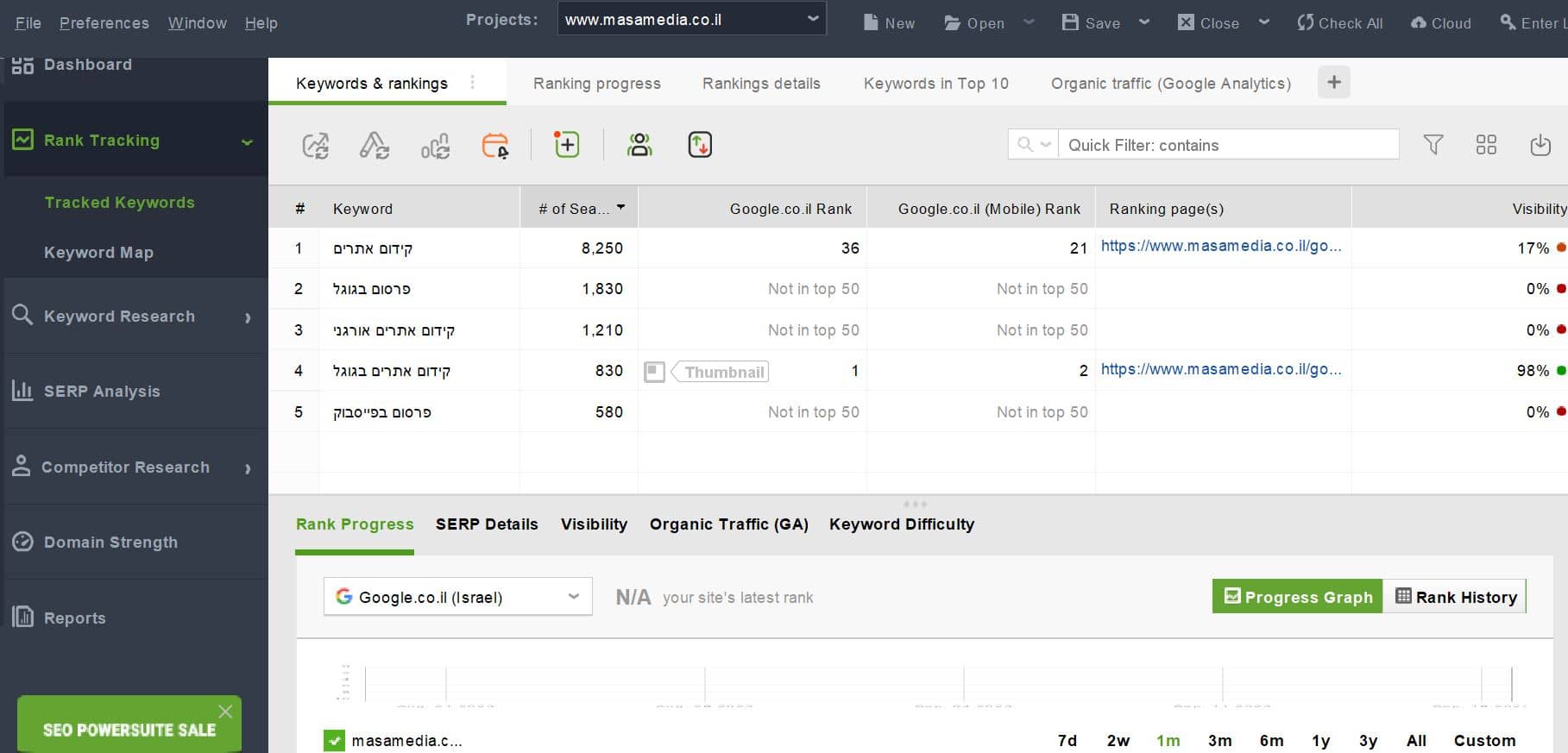 - חבילת אתר אחד – 99 שקלים לחודש – 40 מילים למעקב.