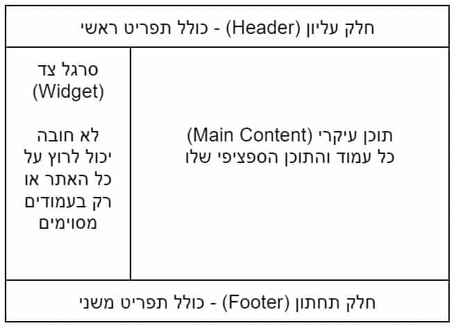 בכל אתר קיים אותו מבנה של תכנים: אלו שמוצגים בתפריטי ניווט ונמצאים באופן קבוע בכל עמודי האתר (תוכן תבניתי – Site-wide), ואלו שמוצגים בתוך עמוד ספציפי בודד, בגוף התוכן (תוכן ראשי – Main Content).